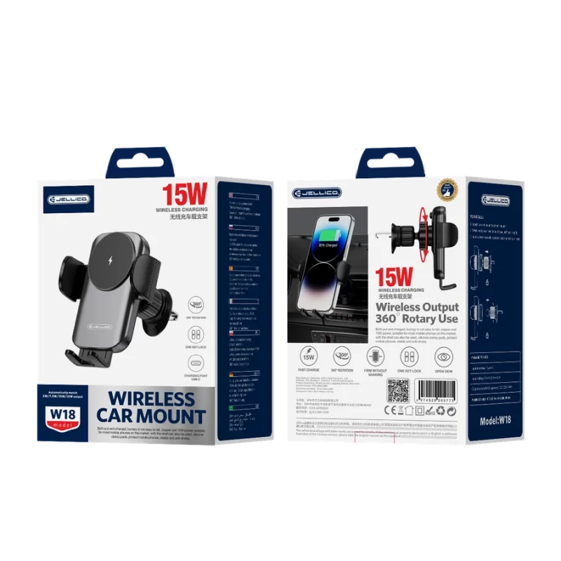 JELLICO car holder with wireless charging W18 15W Black